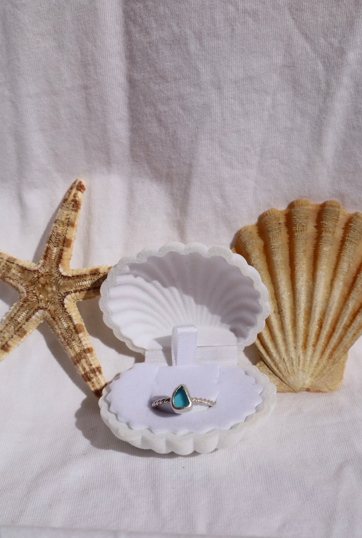 This ring is a size 5. It features a gorgeous piece of deep blue sea glass with a stunning twisted band. It’s the perfect pinky or ring finger ring to add to your sea glass jewellery collection! All of our rings are handcrafted with 925 silver, passion and all the love in the world 🩵